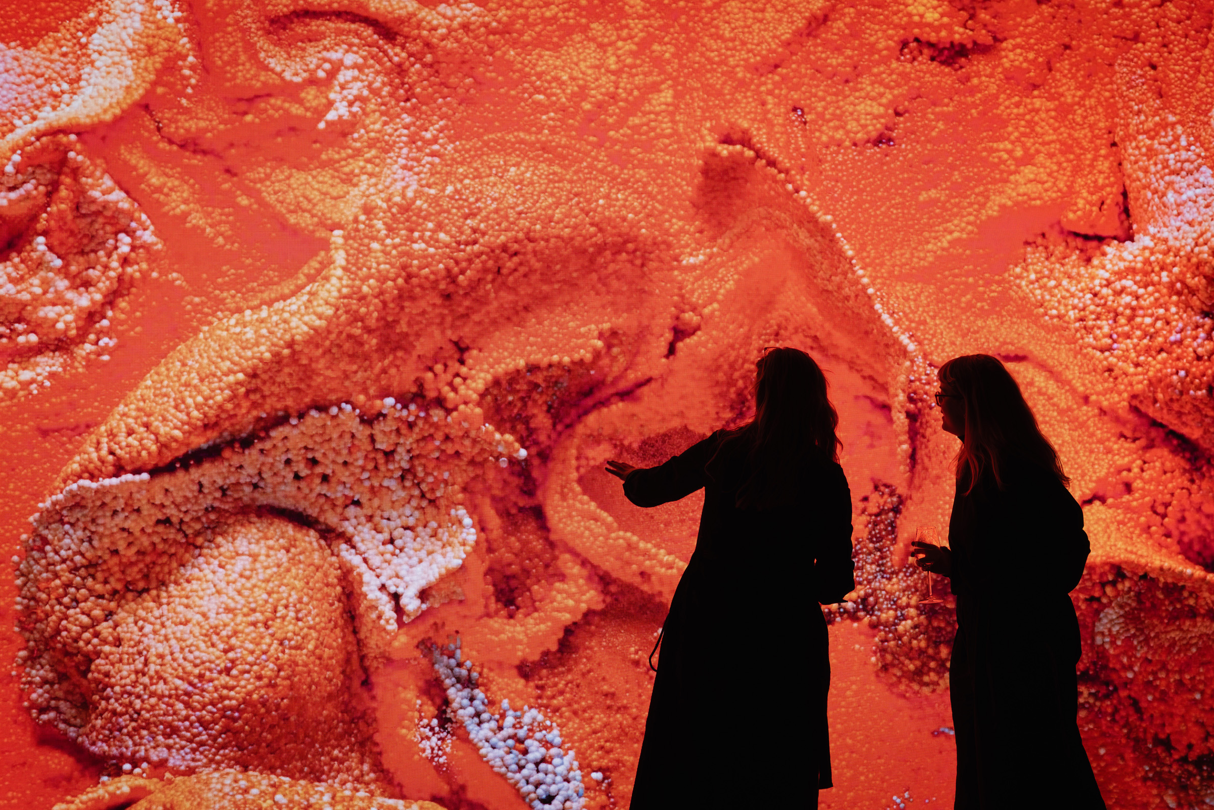Sitzgelegenheiten und eine Bar verwandeln den Raum zugleich in einen offenen Ort zum Verweilen, Beobachten und Austauschen. THE SCREEN lädt dazu ein, Kunst nicht nur kurz zu betrachten, sondern Zeit mit ihr zu verbringen. Freitags und samstags bleibt die Installation daher bis 22 Uhr geöffnet.
